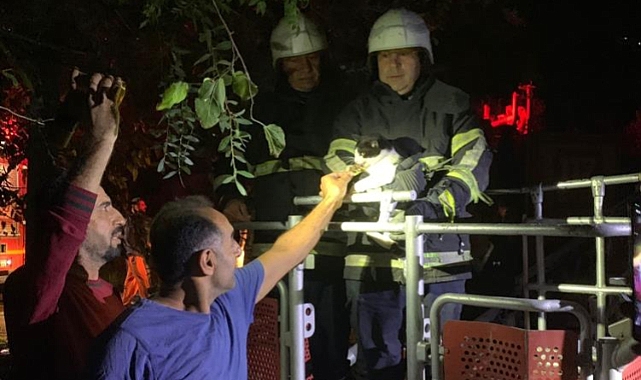 Samandağ ilçesinde ağaçta mahsur kalan kedi, itfaiye ekiplerince kurtarıldı.