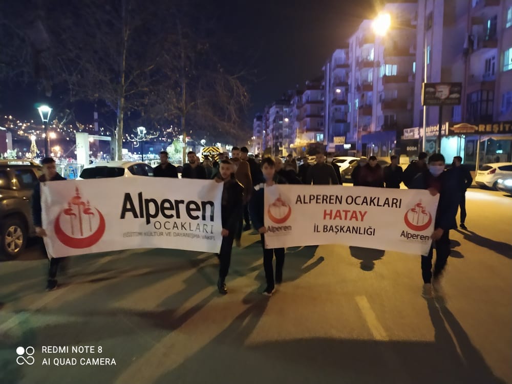 Paladium AVM sinema salonunu dolduran Alperenler Hatay Alperen Ocakları İl Başkanlığı binasından yürüyüş halinde salona geçtiler. Hatay Alperen Ocakları İl Başkanı Mehmet Ali Eker'in katılım gösterdiği etkinlikte film başlamadan önce il başkanı gençlerimize yönelik bir konuşma yaptı.