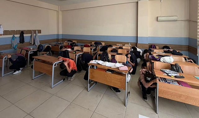 Deprem anında uygulanması gereken “Çök–Kapan–Tutun” hareketini başarıyla yerine getiren öğrenciler, senaryo gereği tahliye planına uygun şekilde güvenli alanlara yönlendirildi.