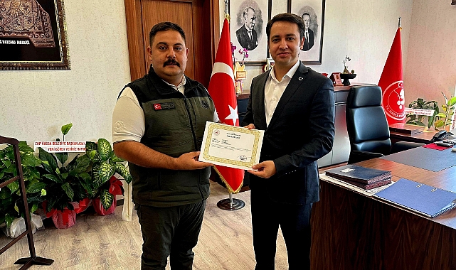 Hassa Kaymakamı Safa Kahraman, yangının büyümesini önleyerek kamu zararının oluşmasını engelleyen ve önlenemez zararların da önemli ölçüde azaltılmasını sağlayan Orman İşletme Şefi ile personeline başarı belgesi takdim etti.