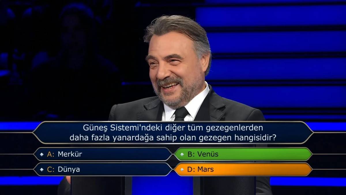 ATV ekranlarında Oktay Kaynarca'nın sunumuyla ekranlara gelen Kim Milyoner Olmak İster?'in son bölümünde, tıp fakültesi mezunu yarışmacı Mehmet Sakin rüzgarı esti. Sakin’in karşısına çıkan "Güneş Sistemi'nde en çok yanardağa sahip gezegen hangisidir?" sorusu, izleyicileri uzayın derinliklerine götürdü. İşte 500 bin TL değerindeki o zorlu soru, şaşırtan doğru cevabı ve Venüs'ün volkanik gizemine dair detaylar...