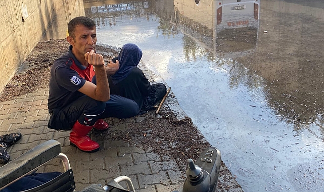 Yollarda oluşan su birikintilerini tahliye eden AFAD ve itfaiye ekipleri, ev ve iş yerlerini temizleyen vatandaşlara destek verdi. (AA)
