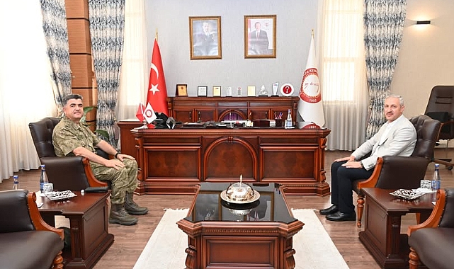 Hatay Mustafa Kemal Üniversitesi (MKÜ) Rektörü Prof. Dr. Veysel Eren, 10. Hudut Tugay Komutanı Tuğgeneral Mehmet Arıkök’ü makamında ağırladı.