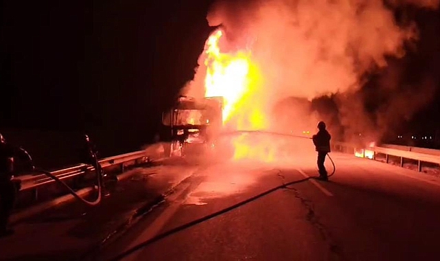 Ekiplerin müdahalesiyle kontrol altına alınan alevler, dorse kısmına sirayet etmeden söndürüldü. Yangında can kaybı ve yaralanma yaşanmazken tır kullanılmaz hale geldi. (İHA)