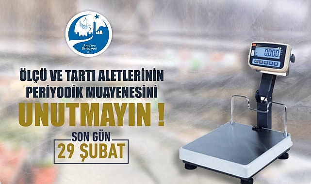 Yapılan açıklamaya göre; kullanımda olan sayaçların tamamının (muayene süresi dolmamış olanlar dahil) hububat muayene aletleri, elektrik, su, havagazı, doğalgaz sayaçları ile akım ve gerilim transformatörleri, uzunluk ölçüleri(tek parçalı ağaç metreler), akıcı maddeler için debi ölçüleri, 5 kg’a kadar (5 kg dahil) hassas olmayan kütle ölçüleri, yay ve elektronik tertibatı bulunmayan maksimum kapasitesi 2000 kg’a kadar(2000 kg) dahil mekanik tartı aletlerinden; masa teraziler, asma teraziler, tek kollu kantarlar, ibreli teraziler ile Belediyelerce tespit edilecek yer ve günlerde kurulan, üretici veya pazarcılar tarafından malların doğrudan tüketicilere perakende olarak satıldığı açık veya kapalı Pazar yerlerinde kullanılan ve tartım kapasitesi 2000 kg ve altında olan 3. ve 4. Sınıf otomatik olmayan elektronik tartı aletleri, bulunduran kişi ve kuruluşların, Odabaşı Ek Hizmet binasında bulunan Antakya Belediyesi Ruhsat ve Denetim Müdürlüğü’ne ölçü ve ölçü aletlerinin muayene ve damgasının yapılması için bir dilekçe ile başvurarak muayene gününü belirleyen belge almaları gerekmektedir.