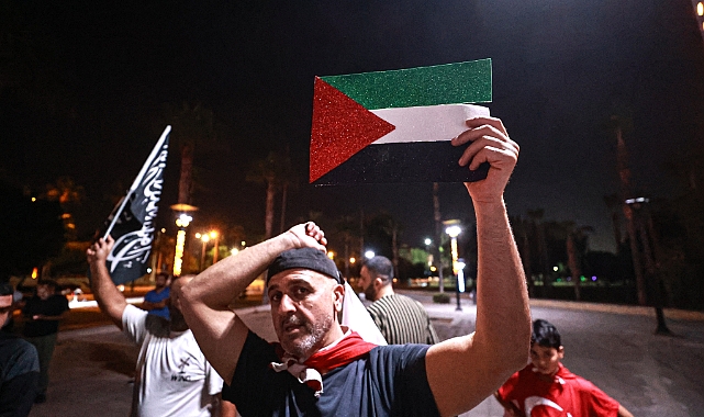 Hatay'da da İsrail ablukasını kırmak ve insani yardım ulaştırmak amacıyla Gazze'ye doğru yol alan Küresel Sumud Filosu'na yapılan saldırı protesto edildi.