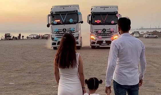 Hatay'da tır şoförlüğü yapan Caner Çevik, ikinci kez baba olmanın heyecanını farklı bir organizasyonla unutulmaz hale getirdi. Tır şoförünün meslektaşları, tırlarla parti düzenleyerek aileye evlatlarının cinsiyetini açıkladı.