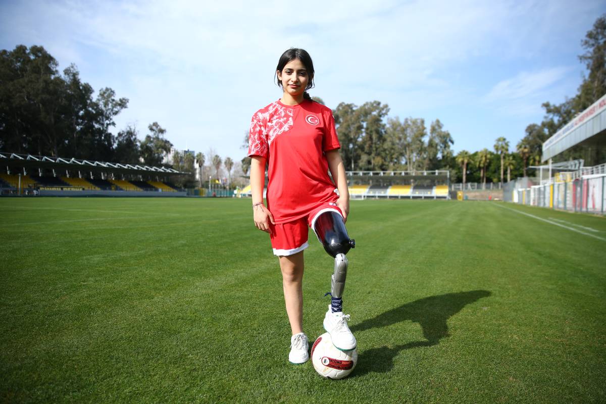Hatay'da depremde babasını kaybettiği apartmanın enkazından 45. saatte kurtarılan 16 yaşındaki Tuğba Akın, dizden ampute edilen sol bacağına protezin takıldığı Adana'da futbola başladı.