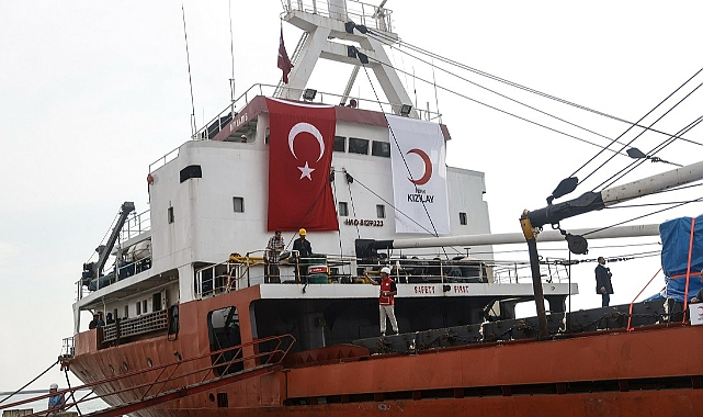 Türk Kızılayın Gazze'ye gönderilmek üzere hazırladığı, içerisinde yaklaşık 800 ton insani yardım malzemesi bulunan 18. "İyilik Gemisi", Mersin Uluslararası Limanı'ndan uğurlandı.