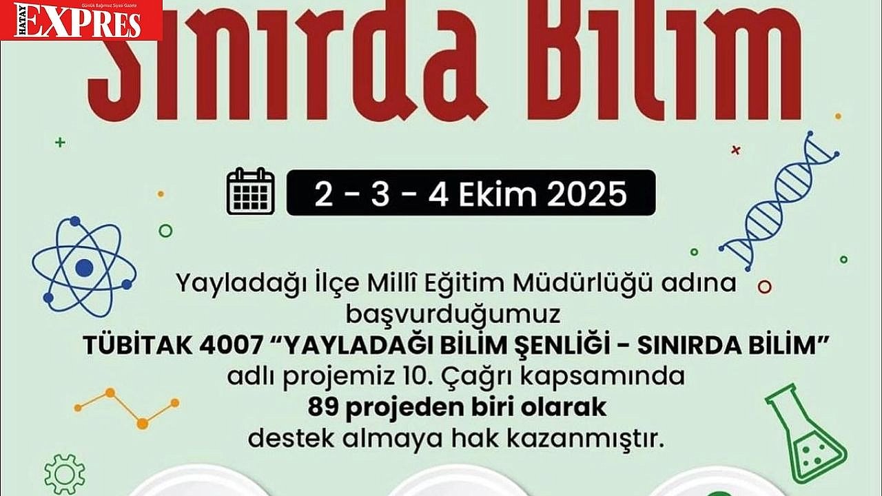 TÜBİTAK 4007 Bilim Şenliği’nde Sınırda Bilim Rüzgârı EsecekYayladağı, Ekim ayının ilk günlerinde bilimin ışığıyla aydınlanacak. 2, 3 ve 4 Ekim tarihlerinde düzenlenecek olan TÜBİTAK 4007 Yayladağı Bilim Şenliği – “Sınırda Bilim” etkinliğinde katılımcılar üç gün boyunca dopdolu bir programla buluşacak.Bilimsel merakı artırmayı hedefleyen şenlikte her yaştan katılımcıya hitap eden atölyeler, öğretici konferanslar ve büyüleyici Gökyüzü gözlemleri yer alacak. Katılımcılar, hem bilim insanlarıyla bir araya gelme hem de bilimin farklı alanlarını yakından deneyimleme fırsatı bulacak.Astronomiden robotik çalışmalarına, doğa bilimlerinden yeni teknolojilere kadar geniş yelpazede hazırlanan etkinlik programı, bilimi sınırlardan taşırarak toplumun her kesimine ulaştırmayı amaçlıyor. Üç gün boyunca Yayladağı, bilimin coşkusunu doyasıya yaşayacak ve adeta bir açık hava laboratuvarına dönüşecek.Organizasyon komitesi, “Amacımız, bilimi toplumun her kesimine ulaştırmak ve çocuklardan yetişkinlere kadar herkesin ilgisini çekebilecek deneyimlerle buluşturmak” açıklamasında bulundu.Katılımcıları bekleyen etkinlikler arasında; atölyelerde birebir uygulamalar, alanında uzman konuşmacıların vereceği konferanslar ve gece yapılacak gökyüzü gözlemleri öne çıkıyor.Bu yıl teması “Sınırda Bilim” olan şenlik, bilimin evrensel diliyle katılımcılara hem öğretici hem de eğlenceli bir deneyim sunacak.ABDULVAHİT GÜRASLAN